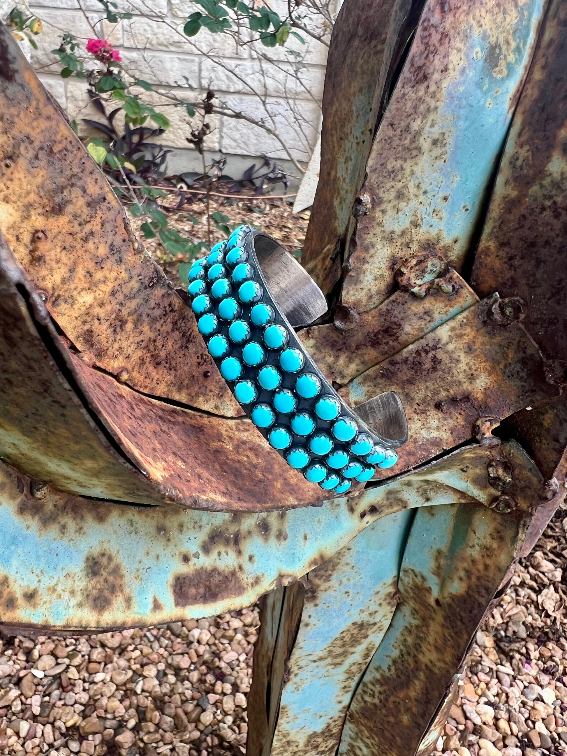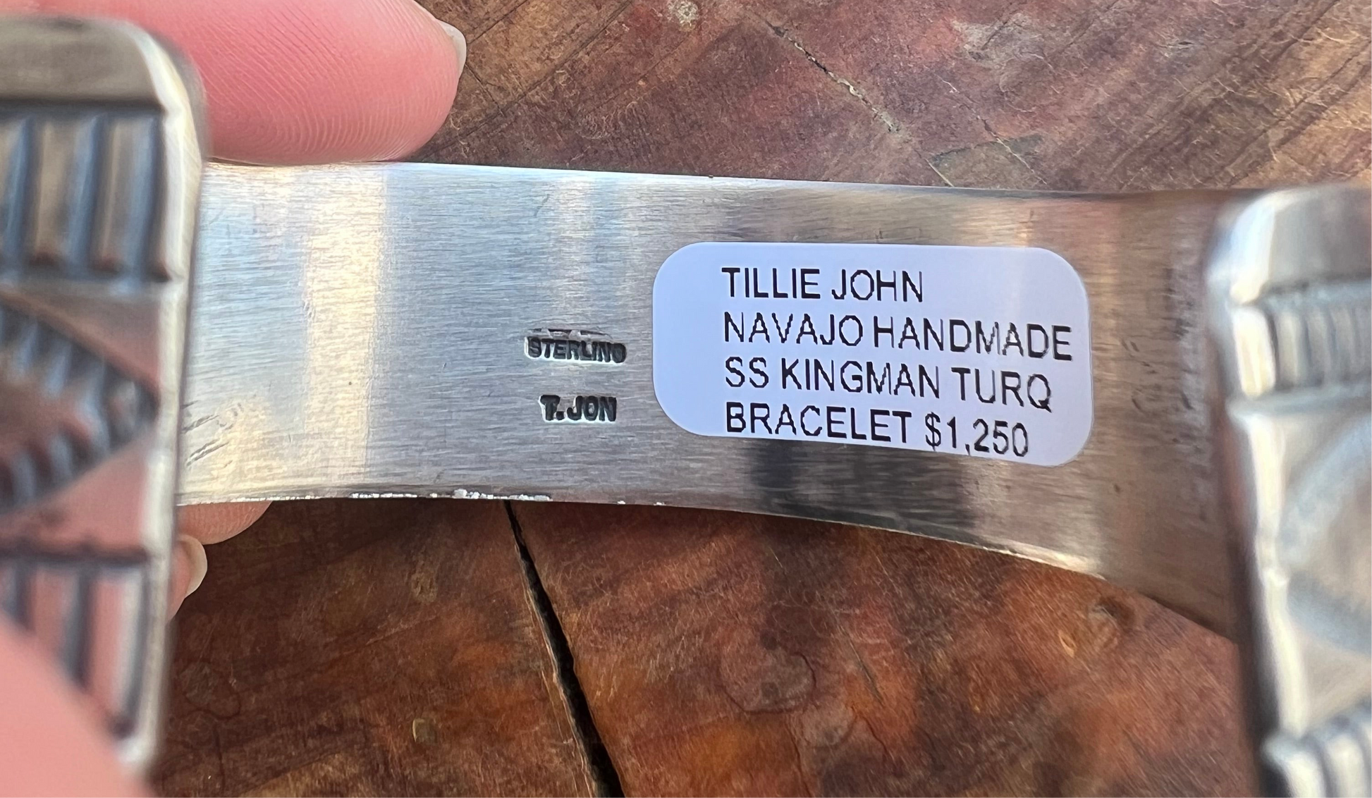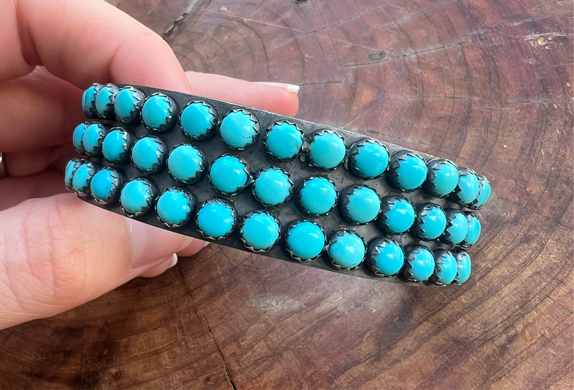 • Navajo handmade kingman 3 row cuff made by Tillie John