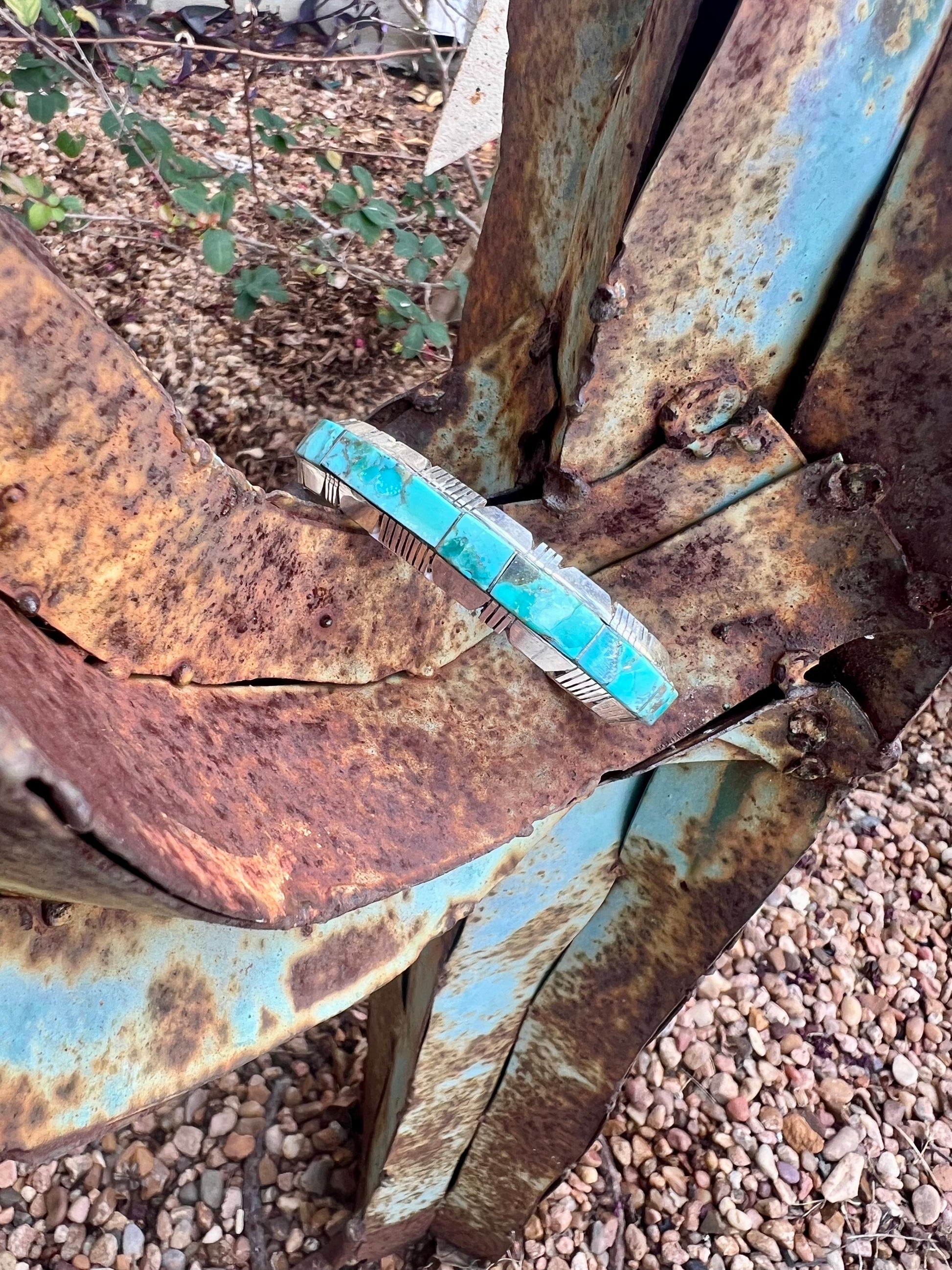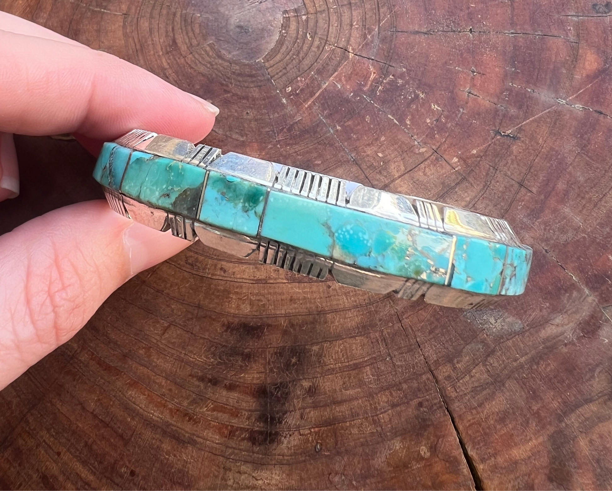 • Native American handmade inlay kingman cuff by Steve Francisco